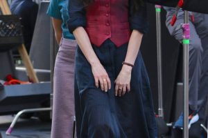 **安妮·海瑟薇新片路透照曝光:酒红马甲配长靴,侧颜杀又上热搜了!** 最近安妮·海瑟薇在拍摄新片的路透照被网…