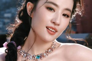 刘亦菲着《闪钻裸色抹胸裙》秀优雅 侧编麻花辫显俏皮